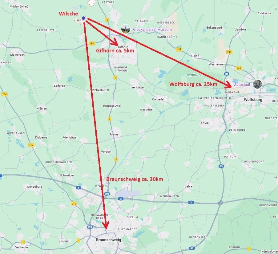 Alles, was Sie brauchen, ist nah: Einkaufsmöglichkeiten, Schulen, Kindergärten und vielfältige Freizeitangebote befinden sich in unmittelbarer Nähe. Gifhorn erreichen Sie in nur 5 bis 10 Minuten, Wolfsburg in etwa 30 Minuten. Für Naturliebhaber liegen Seen und Wälder direkt vor der Tür, und selbst ein Segelflug- und Golfplatz ist schnell erreichbar – ideal für alle, die das Besondere suchen.